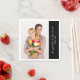 This personalised design can be customised with your photo, name, and date. The hand written script typography and modern date font are placed on a black line, and the text is set vertically beside the image. The white text and black border colours can be modified in the Edit Menu.