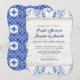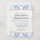 Couple's shower invitation perfect for coed showers. Printed on kraft paper option with a bracket shaped edge for an elegant yet rustic celebration. Hand painted watercolor pretty summer wedding design. Painted in lapis, cobalt and navy blue mixed with with and a touch of grey beige. Elegant and sophisticated enough for a luxe country chic wedding. Art copyright, Audrey Jeanne Roberts