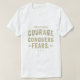 Embrace the power of resilience with our "Courage Conquers Fears" t-shirt. This design features a bold, fearless lion standing tall against a backdrop of stormy skies, symbolising the triumph of bravery over adversity. Perfect for those who face challenges head-on, this shirt is a reminder that courage is the key to overcoming any obstacle. Wear it as a badge of strength and let the world know that fear has no place in your journey.