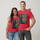 I give wanted to give this a 4 instead of a 5 because these Basic DARK T0shirts run unexpectedly SLIM or Narrow. Which is great if you do not have a potbelly, but I have a paunch. It isn't the shirt's fault that I've got a beer belly. The design and shirt itself is a quality cotton shirt. The color is more of a deep purple, but still a very pretty color. The Basic DARK T-shirts run a bit SLIMMER than the Basic Ts. The neck is a fraction narrower (or seems to be narrower) also. I'm a paunchy middle-aged woman and my neck is 12 inches (31cm) thick and the neckline fell about the same as in the photo of the man, and I had the desire to tug it a bit. So if you're a thick necked man or like loose shirts, be aware these are slimmer shirts. Once I get rid of my lockdown paunch it'll look great. The shirt washed well in cold water with no apparent bleeding. We don't have a dryer, so it hung dry. Did not shrink. Love the colors and the design. The design looks smaller on my shirt than it does on the model on-line. But still, it looks good on the shirt. The printing looks as it does on the model, just the size seems fractionally smaller. Washed garment in cold water, hung dry and design appeared unaffected.