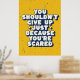 This bold and inspiring design features the powerful message, "You shouldn't give up just because you're scared." A perfect reminder to push past fear and chase your dreams, this typography art is ideal for anyone who values resilience and personal growth.