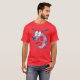 I give wanted to give this a 4 instead of a 5 because these Basic DARK T0shirts run unexpectedly SLIM or Narrow. Which is great if you do not have a potbelly, but I have a paunch. It isn't the shirt's fault that I've got a beer belly. The design and shirt itself is a quality cotton shirt. The color is more of a deep purple, but still a very pretty color. The Basic DARK T-shirts run a bit SLIMMER than the Basic Ts. The neck is a fraction narrower (or seems to be narrower) also. I'm a paunchy middle-aged woman and my neck is 12 inches (31cm) thick and the neckline fell about the same as in the photo of the man, and I had the desire to tug it a bit. So if you're a thick necked man or like loose shirts, be aware these are slimmer shirts. Once I get rid of my lockdown paunch it'll look great. The shirt washed well in cold water with no apparent bleeding. We don't have a dryer, so it hung dry. Did not shrink. Love the colors and the design. The design looks smaller on my shirt than it does on the model on-line. But still, it looks good on the shirt. The printing looks as it does on the model, just the size seems fractionally smaller. Washed garment in cold water, hung dry and design appeared unaffected.