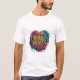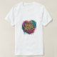 The t-shirt design features a vibrant, abstract heart shape filled with splashes of colourful paint. Inside the heart, the phrase "COURAGEOUS HEARTS CONQUER" is boldly written in a dynamic, graffiti-style font. The design conveys a message of strength, resilience, and the power of a courageous heart to overcome challenges. The overall aesthetic is energetic and inspiring, making it a suitable choice for individuals who value positivity and motivation.