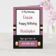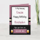 This card is great fun and good quality. I loved the humour inside and on the back. There is the opportunity to change the orientation of this card from landscape to portrait, which I did. It is relatively straightforward to amend the typeface to fit the new orientation. It was well packaged with no plastic. The printing on this card is excellent.