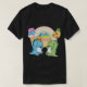 I give wanted to give this a 4 instead of a 5 because these Basic DARK T0shirts run unexpectedly SLIM or Narrow. Which is great if you do not have a potbelly, but I have a paunch. It isn't the shirt's fault that I've got a beer belly. The design and shirt itself is a quality cotton shirt. The color is more of a deep purple, but still a very pretty color. The Basic DARK T-shirts run a bit SLIMMER than the Basic Ts. The neck is a fraction narrower (or seems to be narrower) also. I'm a paunchy middle-aged woman and my neck is 12 inches (31cm) thick and the neckline fell about the same as in the photo of the man, and I had the desire to tug it a bit. So if you're a thick necked man or like loose shirts, be aware these are slimmer shirts. Once I get rid of my lockdown paunch it'll look great. The shirt washed well in cold water with no apparent bleeding. We don't have a dryer, so it hung dry. Did not shrink. Love the colors and the design. The design looks smaller on my shirt than it does on the model on-line. But still, it looks good on the shirt. The printing looks as it does on the model, just the size seems fractionally smaller. Washed garment in cold water, hung dry and design appeared unaffected.