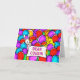 Dear Cousin, Happy Easter, paper greeting card with a colour design of dyed Easter eggs, a bunny, and a chick. Bright and colourful digital art design with two Easter characters holding a sign with DEAR COUSIN written on it. Customise the inside message, verse as you like before purchase. Art, image, and verse copyright © Shoaff Ballanger Studios, 2024.