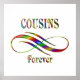 Share your love for that special cousin with this colorful infinity symbol and the words Cousins Forever.