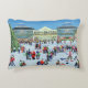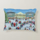 The cushion is small to medium sized. It can be washed. It is well constructed. The material used is pleasant and feels decent quality. It has a very slight plush feel which is good. It is well labelled and its care clearly stated. Theres nothing not to like about it. All in all a good item. The deduction of one star overall is due to long delays in delivery to the UK. It's not clear if this was due to Zazzle or somewhere else in the chain as I did not receive status updates of dispatch or progress. I cannot comment anymore on that other than to say that was our experience but it may not be the same for you. The printing was surprisingly close to what we were expecting. Its an art piece and on material so its hard to assess the precision of printing but it seems close to the original. The soft lines are reproductions of the original. The colour is a fair reflection of the painting. This was printed in the US and it looks like US quality. No issues.