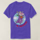 I give wanted to give this a 4 instead of a 5 because these Basic DARK T0shirts run unexpectedly SLIM or Narrow. Which is great if you do not have a potbelly, but I have a paunch. It isn't the shirt's fault that I've got a beer belly. The design and shirt itself is a quality cotton shirt. The color is more of a deep purple, but still a very pretty color. The Basic DARK T-shirts run a bit SLIMMER than the Basic Ts. The neck is a fraction narrower (or seems to be narrower) also. I'm a paunchy middle-aged woman and my neck is 12 inches (31cm) thick and the neckline fell about the same as in the photo of the man, and I had the desire to tug it a bit. So if you're a thick necked man or like loose shirts, be aware these are slimmer shirts. Once I get rid of my lockdown paunch it'll look great. The shirt washed well in cold water with no apparent bleeding. We don't have a dryer, so it hung dry. Did not shrink. Love the colors and the design. The design looks smaller on my shirt than it does on the model on-line. But still, it looks good on the shirt. The printing looks as it does on the model, just the size seems fractionally smaller. Washed garment in cold water, hung dry and design appeared unaffected.