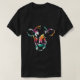 I give wanted to give this a 4 instead of a 5 because these Basic DARK T0shirts run unexpectedly SLIM or Narrow. Which is great if you do not have a potbelly, but I have a paunch. It isn't the shirt's fault that I've got a beer belly. The design and shirt itself is a quality cotton shirt. The color is more of a deep purple, but still a very pretty color. The Basic DARK T-shirts run a bit SLIMMER than the Basic Ts. The neck is a fraction narrower (or seems to be narrower) also. I'm a paunchy middle-aged woman and my neck is 12 inches (31cm) thick and the neckline fell about the same as in the photo of the man, and I had the desire to tug it a bit. So if you're a thick necked man or like loose shirts, be aware these are slimmer shirts. Once I get rid of my lockdown paunch it'll look great. The shirt washed well in cold water with no apparent bleeding. We don't have a dryer, so it hung dry. Did not shrink. Love the colors and the design. The design looks smaller on my shirt than it does on the model on-line. But still, it looks good on the shirt. The printing looks as it does on the model, just the size seems fractionally smaller. Washed garment in cold water, hung dry and design appeared unaffected.