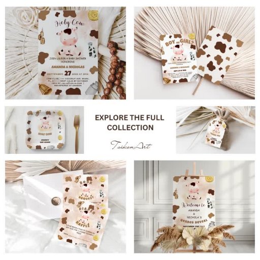Boho watercolor neutral gender baby shower thank you card, with cute holy cow, handwritten script, cow print brown beige colours, in a rustic-modern- bohemian style. Don't forget to explore the full collection. 🐮