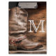 Cow Boy Boots Spur Monogram Initial Clip Board