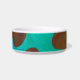 This is a heavy, durable bowl decorated with Tibbies of many colors, the perfect size for hungry/thirsty Tibs. The design is interesting and printing clear.