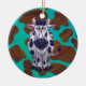 Cow Brown and Teal Print Ceramic Tree Decoration