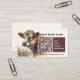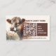Cow business cards featuring a modern, artistic cow and floral design. Great for farms and other businesses. The QR code on the front can be used for your online website. Great mix of traditional and digital to meet your needs. The front also has space for your products and services such as beef, dairy, and feedlot operations. Add your name, title, and contact information including your social media handles to the back of the business card. Customise the text on the front and back. Use the template to create your own cow business cards with QR code.