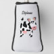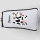 This cow design golf club head cover is an accessory that you slide over the head of a golf club for protection against knocks whilst sitting in your golf bag. Made out of polyester, cotton, and marine vinyl with a choice of different piping colours. You can customise this golf club head cover with any text. Should you require any help with customising then contact us through the message link on this page. Cow design golf club head cover.