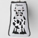 This cow design golf club head cover is an accessory that you slide over the head of a golf club for protection against knocks whilst sitting in your golf bag. Made out of polyester, cotton, and marine vinyl with a choice of different piping colours. You can customise this golf club head cover with any text. Should you require any help with customising then contact us through the message link on this page. Cow design golf club head cover.