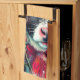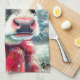 Cow Dreaming of Warmer Times Teal Red Floral Tea Towel