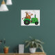 A cow driving a green tractor. This design looks really effective on this Poster