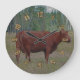 "Annabelle Calling for her Calf" - A sweet young bovine (Cow) calls for her wayward calf, while grazing a magnificent forested cattle property. Cattle are gentle, inquisitive and intelligent by nature. <br><br>This clock design is also available with or without the hour numerals.<br<br>