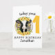 This card is great fun and good quality. I loved the humour inside and on the back. There is the opportunity to change the orientation of this card from landscape to portrait, which I did. It is relatively straightforward to amend the typeface to fit the new orientation. It was well packaged with no plastic. The printing on this card is excellent.