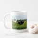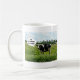 Black and white cow standing in the pasture, with a little humourous saying: "I'm outstanding in my field!"