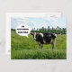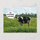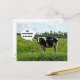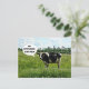 Black and white cow standing in the pasture, with a little humourous saying: "I'm outstanding in my field!"