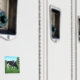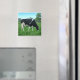 These magnets feature a photograph of black and white cow eating grass in a green pasture. This image is also available on matching cards & postage stamps. Photo ©Archie Patenaude
