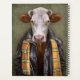 This design features a portrait of a cow in a leather jacket and scarf.