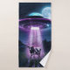 Cow meets aliens. bath towel