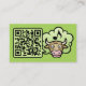 Surprised farting cow cartoon. Custom background colour. Custom text. Custom QR Code at the back side.