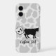 Farting cow silhouette. Seamless cow pattern background. Vector elements with fully customisable colour fills. Custom text.