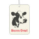 Air freshener is shown with an art print of a black and white Jersey cow and a scent of New Car.