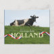 Cow Postcard. A postcard of a Dutch Frisian Holstein Cattle cow sitting and relaxing in a rural Dutch polder landscape on a beautiful blue clear spring day in May in The Netherlands (Holland). This cow postcard is fully customisable, add text and images!