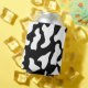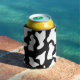 A graphic design cow print by artist/designer Charmaine Paulson on a can cooler.