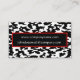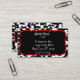 This bold business card has a black-and-white cow print border with red trim. The back features the same pattern, with a rectangular box in the middle. It's an eye-catching design, but it's also subtle enough to look professional. The text is white on a black background, but you can change either (and the fonts) by clicking "Customise It" above. If the text needs adjusting after you type in your information, you can change font size and move it around with the "Customise It" feature as well. This is a bold, yet simple, design for any profession.