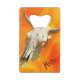 Cow skull against the background of fire and flames. Credit card bottle opener. Customisable. You can change the image and you can change or delete the text - Hello! Have fun!