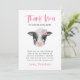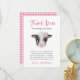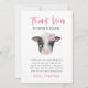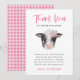 Rustic kid's birthday party thank you card featuring watercolor illustration of baby cow with pink flowers. The default text thanks the guests for coming to the party and for the gifts. The text says "thank moo for coming to my party!"