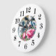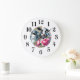 This wall clock is shown with a cute farm cow and pink peony flowers art print.