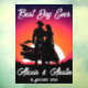 A cowboy and cowgirl are silhouetted against a setting sun and are ready for their best day ever in this gorgeous western-themed design.