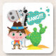 A little cowboy in a cowboy hat, a grey smiling horse, a cactus of green, and text that reads BANG on a design great for kids who love the wild west! Cowboy T-shirts, bags, mugs, cards, key chains, mousepads, pillows, and so much more!