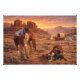 brings a quiet Western dusk into your home. The scene captures a lone cowboy tending his horse as a wagon and campfire glow in the distance, rendered in warm, earthy tones that keep detail crisp without glare. This canvas fits naturally in a cozy study, rustic living room, or a cabin wall a piece that feels lived-in and tells a story every time you pass it.