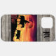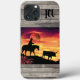 Personalise this Unique "One of a Kind" Cowboy and Longhorn Steer iPhone Case! It Features a Cowboy Riding a Horse Herding a Longhorn Steer During a Beautiful Orange Sunset...Surrounded by Wood Borders!
