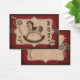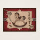 Western rustic design with rocking horse, rope, sheriff badge and saddle stitch elements for a baby gift card.