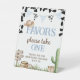 Let guests know to take a treat with this "Favors" cowboy table sign. Featuring the signature watercolor western boot and cactus design. Matches the full shower suite for a professional and rustic display.
