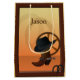 A graphic illustration of a cowboy design on a gift bag.