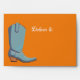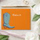 Retro Inspired Cowboy western Wedding envelopes. Has return address on the back. Features cowboy boot and hat in colours of orange, blue, cream and pink. Perfect for a bridal shower, engagement party, bachelorette party, anniversary or wedding! If the yellow warning comes up for in inside envelope pay no attention to it, it will be fine. To make more changes go to Personalise this template. On the bottom you’ll see “Want to customise this design even further? Click on the EDIT using Design tool. From there you can change some of the fonts & some colours, move things around or delete what you need.
