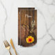 Customize the rustic Cowboy Boots, Daisy and Horse Bit Country Wedding Menu with the details of the meal that you will serve at your casual yet classy engagement party, bridal shower or marriage reception by adding the salad or first course, entree or second course and dessert or third course. This informal custom equine theme wedding menu features a quaint floral photograph of a pair of leather western cowboy boots, yellow and orange daisy flower blossom, white pearl necklace, horse bit and leather reins with a brown weathered barn wood background.