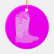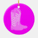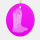 Do you like cute ornaments? This ornament has a pair of pink cowboy boots with stars on a pink background.