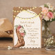 cowboy pink and brown floral bridal shower invitation with string lights.